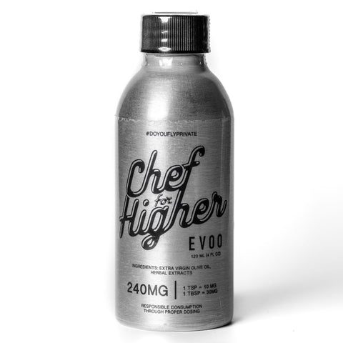 Chef For Higher EVOO $60 Cold Pressed Extra Virgin Olive Oil that contains 240mg of THC per bottle and 10mg of THC per tsp. Use this light oil in dressings, sauces, and in dips to add a “higher” dimension to the flavor profile. As it is infused, it is to enhance recipes that only adults delight in. www.chefforhigher https://x.com/hwmk