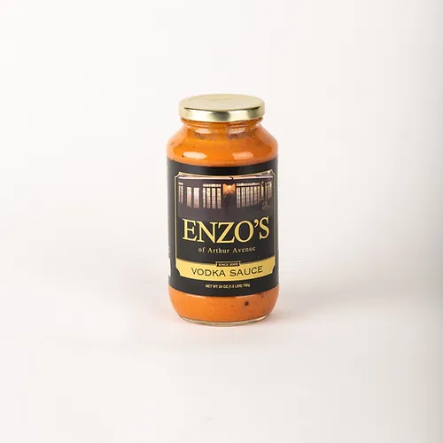 Enzo’s of Arthur Avenue Vodka Sauce $8.99 Authentic all-natural Vodka sauce from the famed restaurant in the Bronx! This impressive NYC Italian sauce contains fresh ingredients such as heavy cream, vodka, Sambuca, prosciutto, tomatoes, fresh basil, garlic, and oregano. Add the vodka sauce to pasta, fried eggplant, meatball sandwiches, or as a dip for calamari. www.enzosofarthuravenue.com