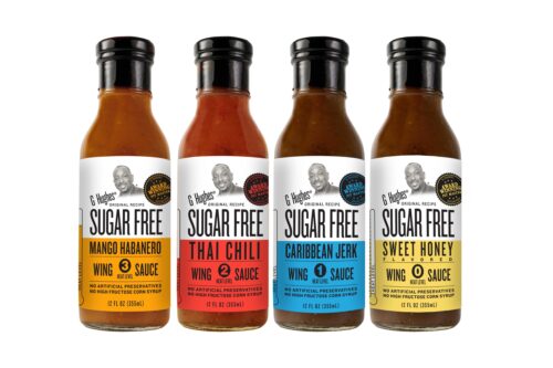 Hughes Maple Brown BBQ Sugar Free Sauce $4.89 This award-winning sweet sauce has only 2 carbs per serving and is diabetic friendly! All the sauces in the line from this Black gourmet sauce maker and pit master are sugar free and tell you on the label how many carbs need to be counted if you are diabetic. The taste is heavenly, but your blood sugar will not fly! Try the Mango Habanero Wing Sauce $4.89 as well. The wing sauce line is robust and complex! www.GHughesSugarFree.com