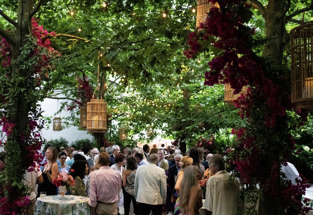 Immediately they were met with a movie scene: draped greenery, wicker chairs, the tinkle of cocktail glasses and lanterns swinging overhead. It was a re-creation of the Colony Hotel, which was a Guild Hall gala sponsor, complements of Sarah and Andrew Wetenhall.